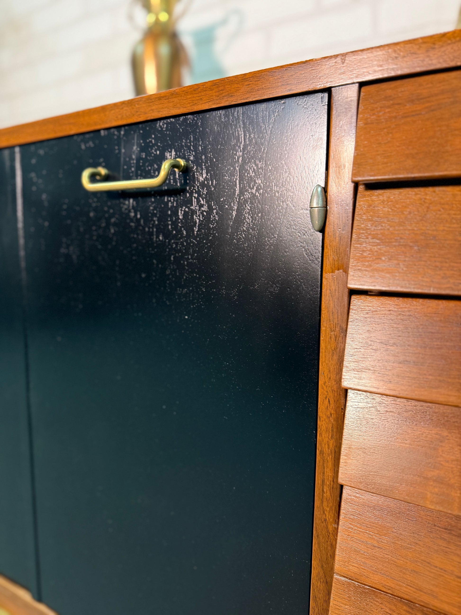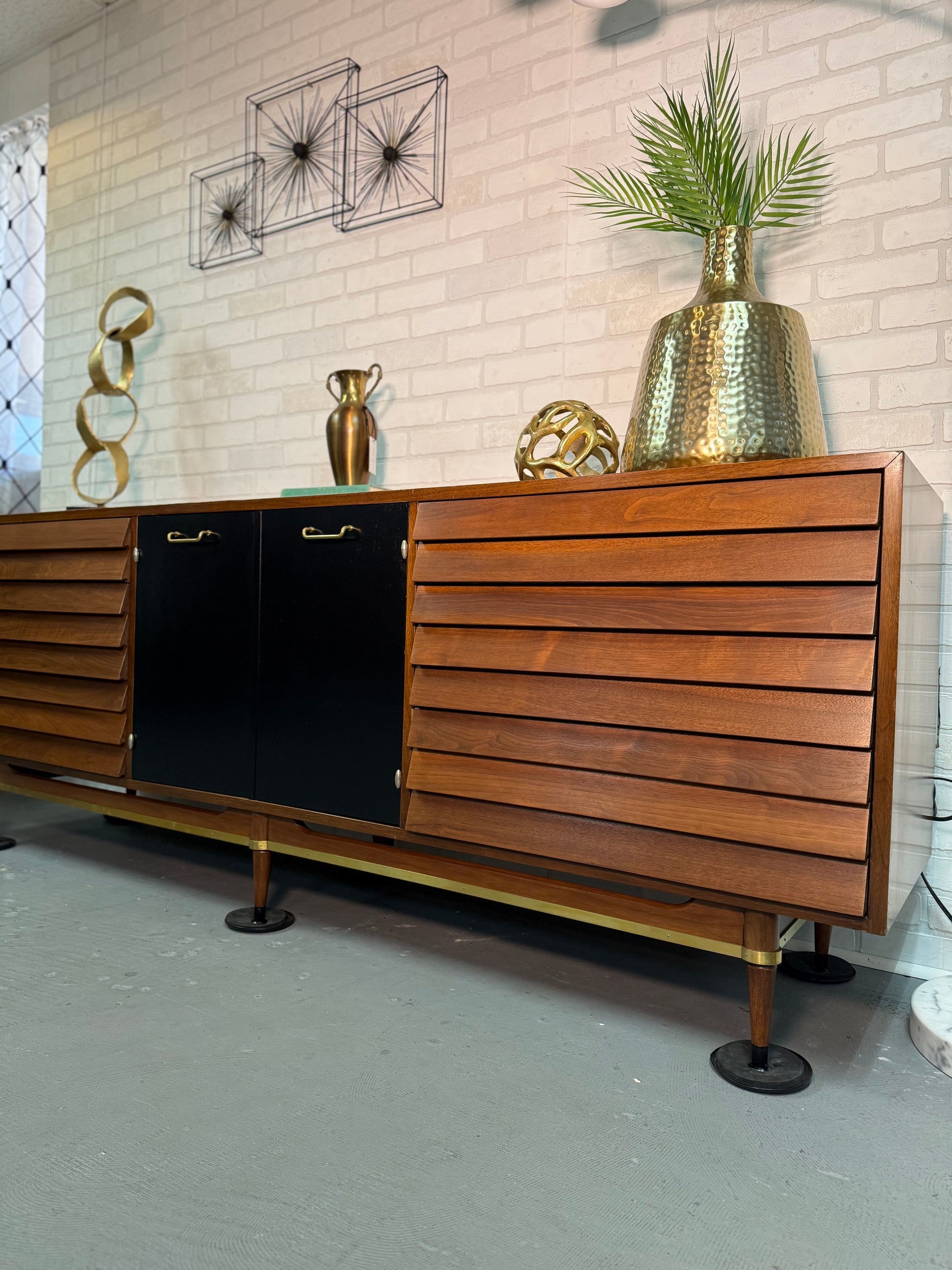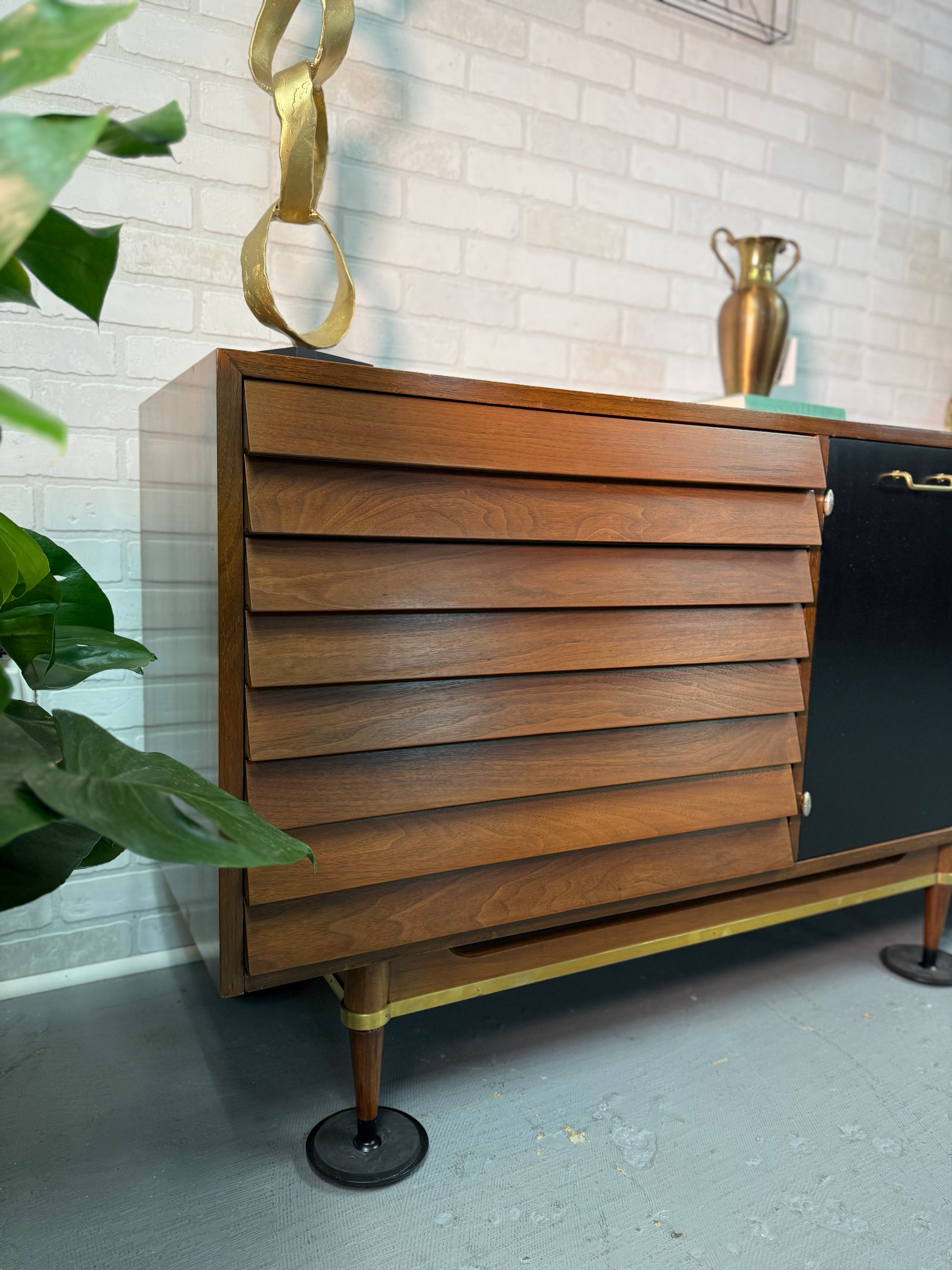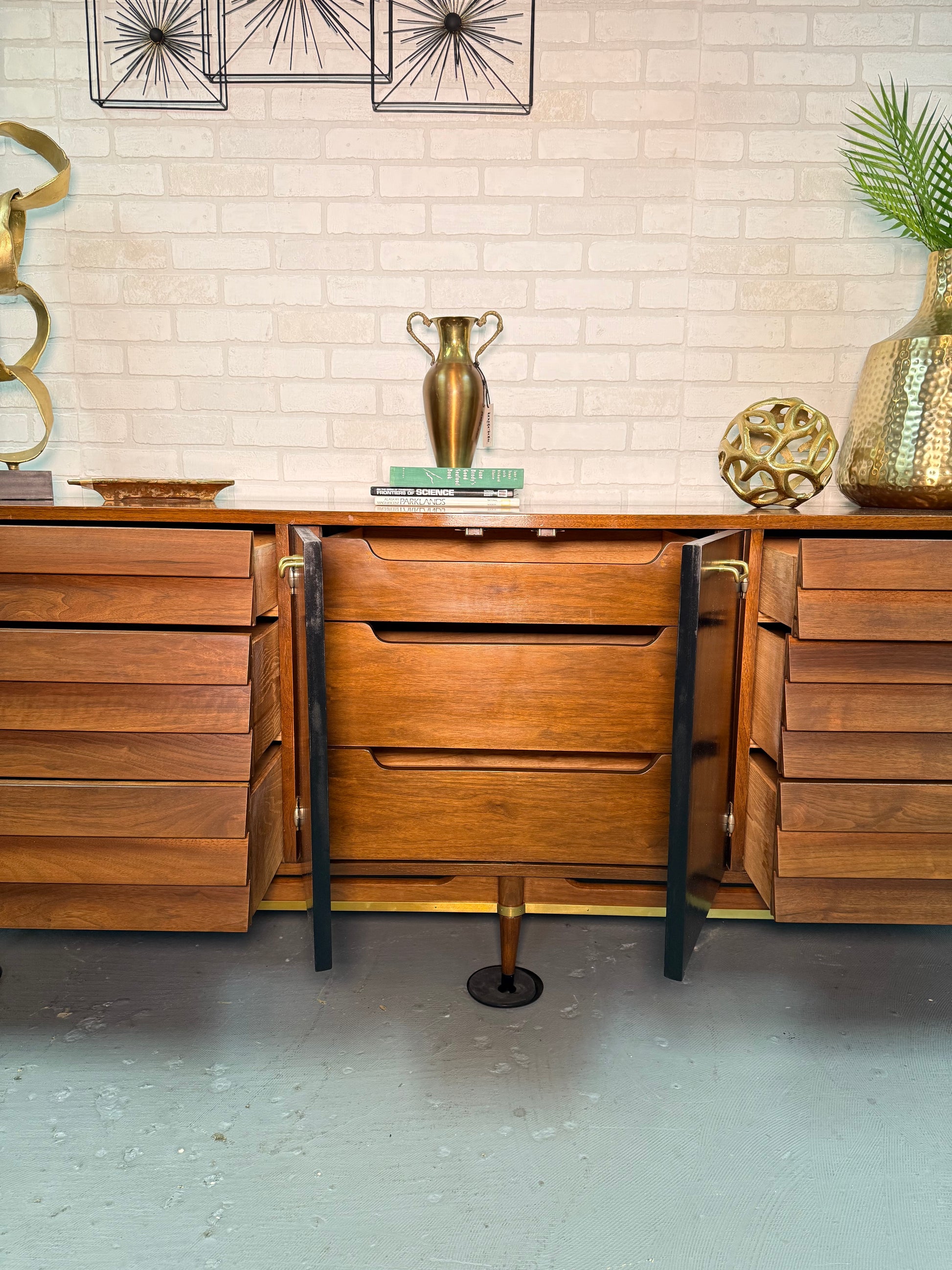 Absolutely stunninggggg dresser! The hinges, handles, and drawers are completely unique! If you are a collector of MCM, you know this company is highly sought after!